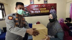 Pasuruan. CBN-Indonesia.comIde cemerlang,bagi-bagi doorprize demi menarik antusias warga untuk mengikuti Vaksinasi yang digelar anggota Polsek Sukorejo dan Anggota TNI Koramil Sukorejo,berbuah sukses.Pasalnya, Vaksinasi yang bertarget