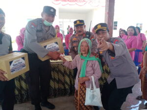 Penuh Canda Tawa, Waka Polres Pasuruan Bersama Kapolsek Purwosari Bagikan Puluhan Sembako