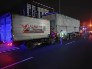 Sebuah Mobil Truk Boks Tabrak Bokong Truk Tronton di Purwosari Hingga Makan satu Korban Jiwa
