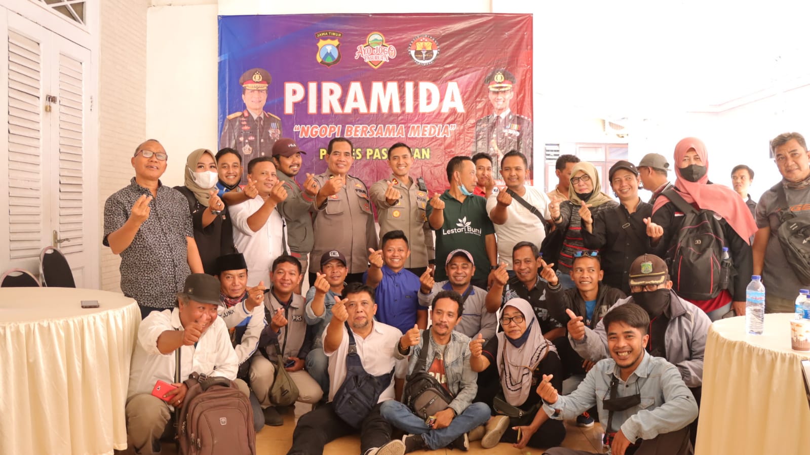 PASURUAN. CBN-Indonesia.com – Polres Pasuruan kembali menggelar acara Piramida yaitu sebuah program unggulan dari Kapolda Jawa Timur Irjen Pol Dr. Nico Afinta yang memiliki arti Ngopi Bersama Media. Sejumlah kurang lebih 60 awak media atau jurnalis dari berbagai media baik anggota PWI maupun Media On Line turut serta hadir dalam acara yang digelar di Teras Gedung Tribrata Polres Pasuruan tersebut. Senin, (01/08/2022).