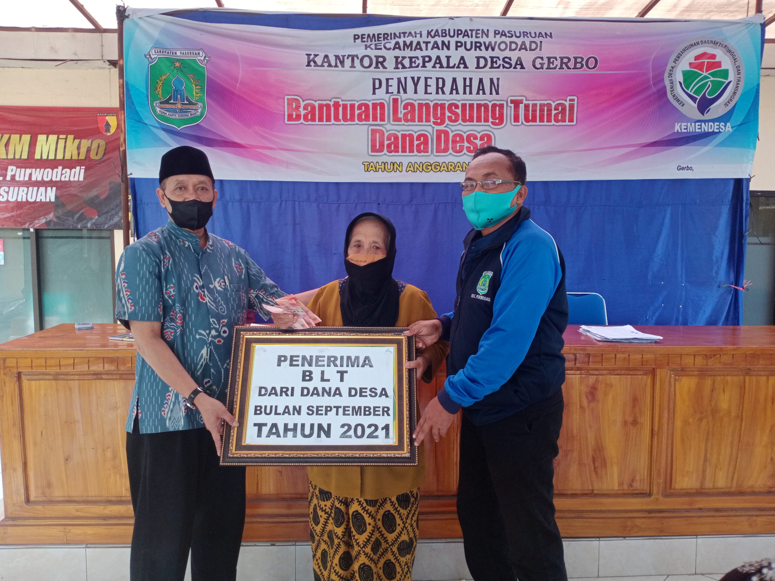 Pasuruan. CBN-Indonesia.com – Pemerintahan Desa Gerbo Kecamatan Purwodadi Kabupaten Pasuruan,membagikan BLT DD (Bantuan Langsung Tunai Dana Desa) bulan September kepada masyarakat yang terdampak Covid-19. Sabtu 11/09/21