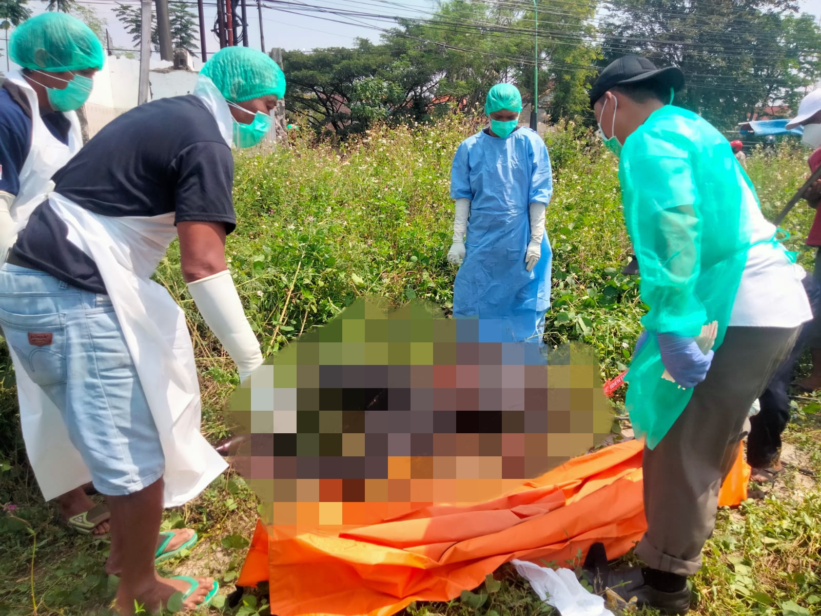 Kondisi mayat tak beridentitas tersebut diketemukan sudah menghitam dengan badan membengkak.