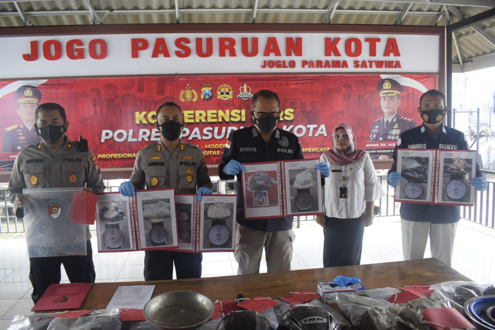 Pasuruan. CBN-Indonesia.com – Kota tetapkan 4 tersangka, perakit dan penjual bom ikan yang telah menewaskan dua orang warga Pasuruan. Hal ini disampaikan Kapolres Pasuruan Kota AKBP Arman, bersama Kabidlabfor Polda Jatim Kombes Pol Sodiq Pratomo, dan Kasat Reskrim serta Kasi Humas Polres Pasuruan Kota, saat jumpa pers, pada Rabu (15/9/2021), di Joglo Parama Satwika Polres Pasuruan Kota.