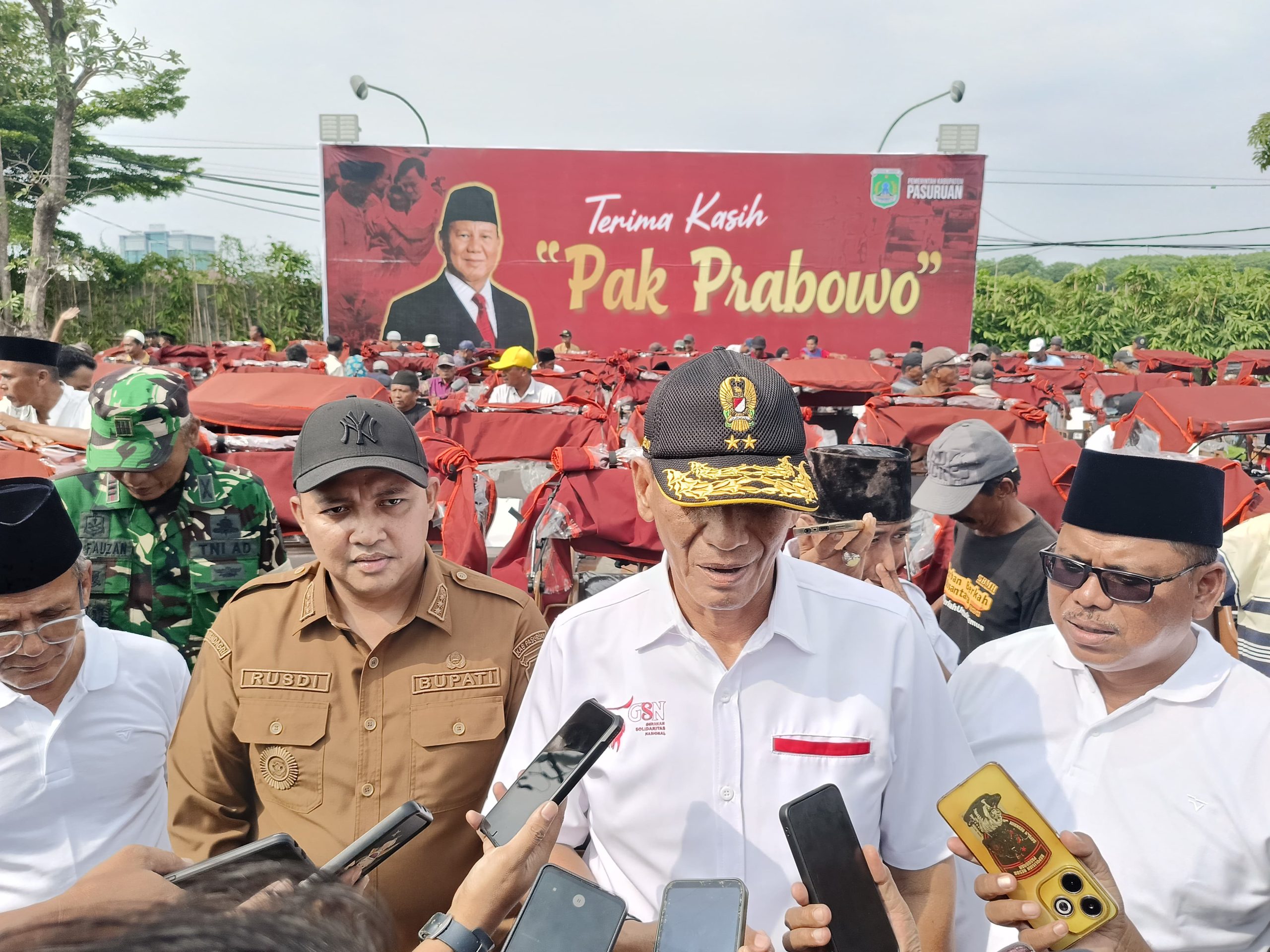 Untuk Kabupaten Pasuruan, becak-becak tersebut diserahkan secara simbolis oleh Direktur Perencanaan dan Pengembangan Usaha Yayasan GSN, Mayjen TNI (Purn) Firman Dahlan dan Bupati Pasuruan, Rusdi Sutejo, di Kantor Bupati Pasuruan, Selasa (16/12/2025).