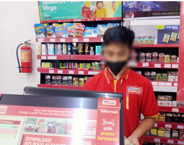 “Berawal dari saya membeli beberapa barang di Alfamart itu mas, saya beli permen Hexsos, rokok Sampoerna mentol, dan larutan Cap Kaki Tiga di Alfamart itu.